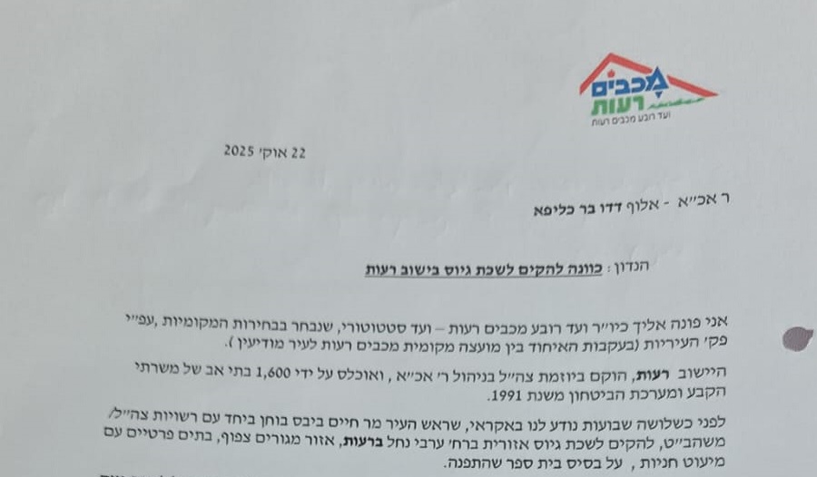 מאבקם של תושבי רעות נגד כוונת העירייה לקדם פתיחת שלוחה של לשכת הגיוס ביישוב, כולל עצומה עליה חתמו כבר 2,200 תושבים, צובר תאוצה, ולאחרונה פנו אנשי וועד רובע מכבים-רעות לראש אכ"א בנושא.